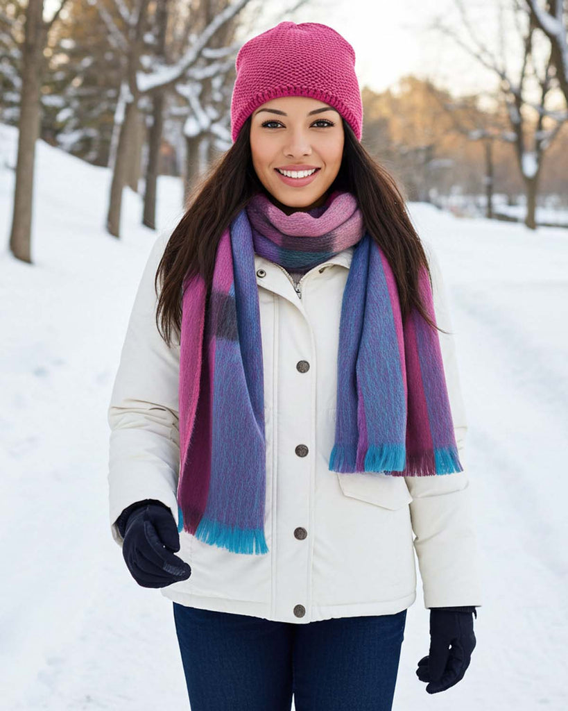 Indulge in luxurious comfort and style with our new Grapevine Alpaca Plaid Scarves. Featuring a captivating blend of rich purple tones interwoven with delicate golden accents, these scarves add a touch of elegance and warmth to any outfit. Made from premium alpaca wool, they are ultra-soft, lightweight, and gentle on sensitive skin. Sustainably produced alpacas require minimal resources, making these scarves a green choice for the environmentally conscious. With definitive plaid designs and vibrant colors, our scarves are the perfect accessory to enhance your wardrobe or serve as a thoughtful, sustainable gift. Embrace eco-friendly elegance and discover the sustainable luxury of our Alpaca Plaid Scarves.