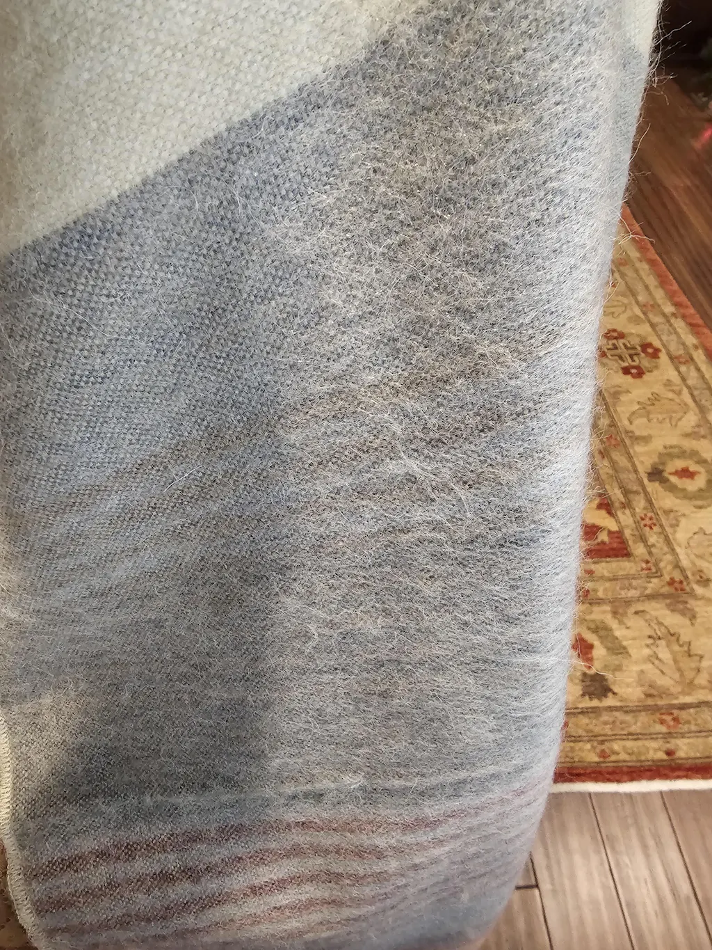 *Recommended:  Use a soft bristle brush (upholstery) to comb the fibers back in the direction of the weave and iron on low.