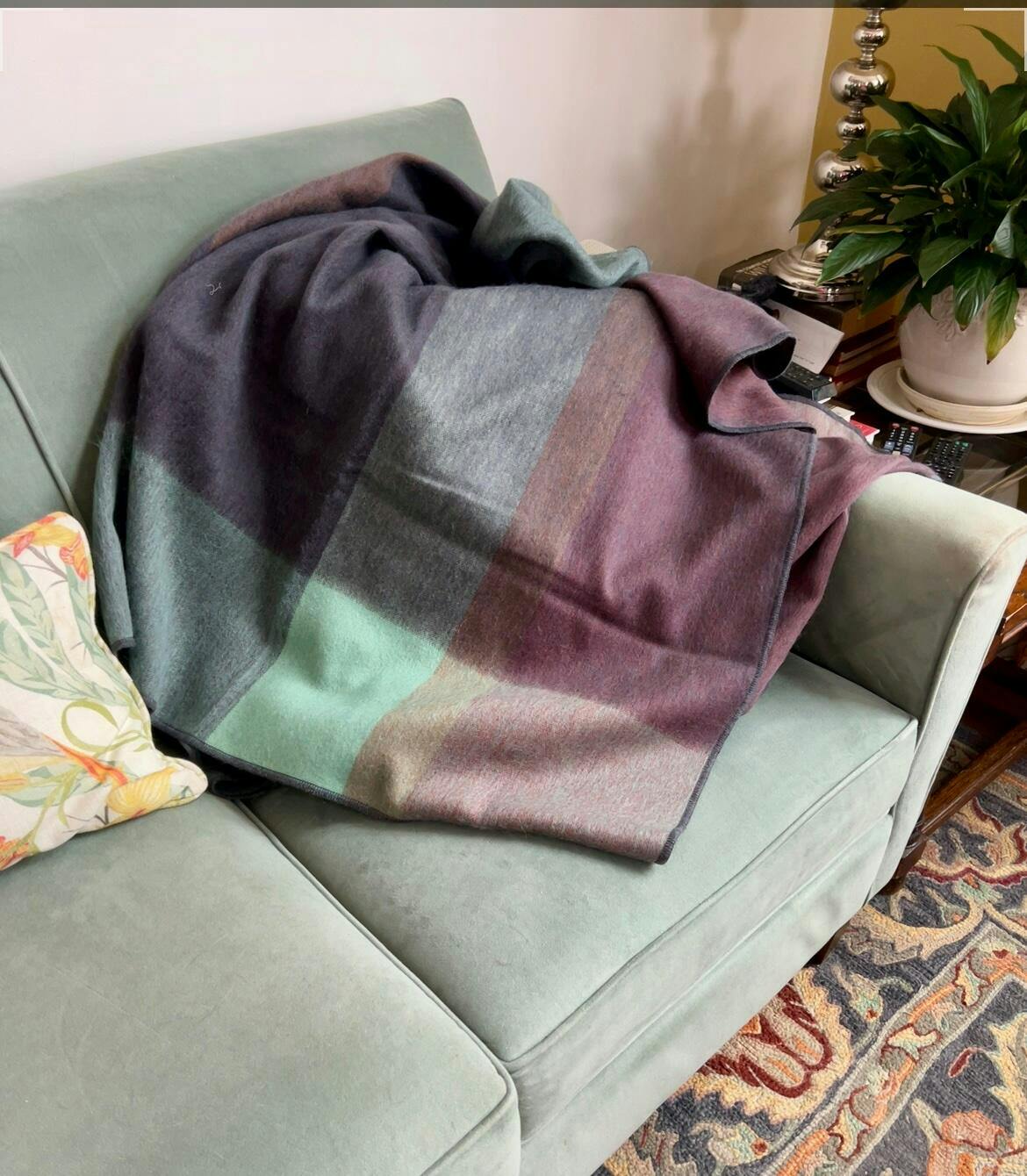 A dreamy blend of wine, midnight blue, and small accents of sage green with taupe, Twilight captures the magic just after sunset. Its gradient feel and deep hues add depth and sophistication, making it a standout décor piece. The alpaca blend keeps you warm as the evening cools, turning every night into a cozy ritual.